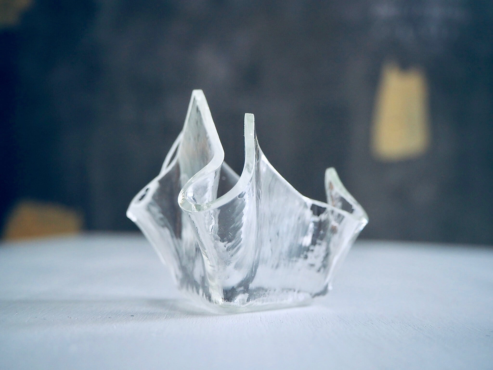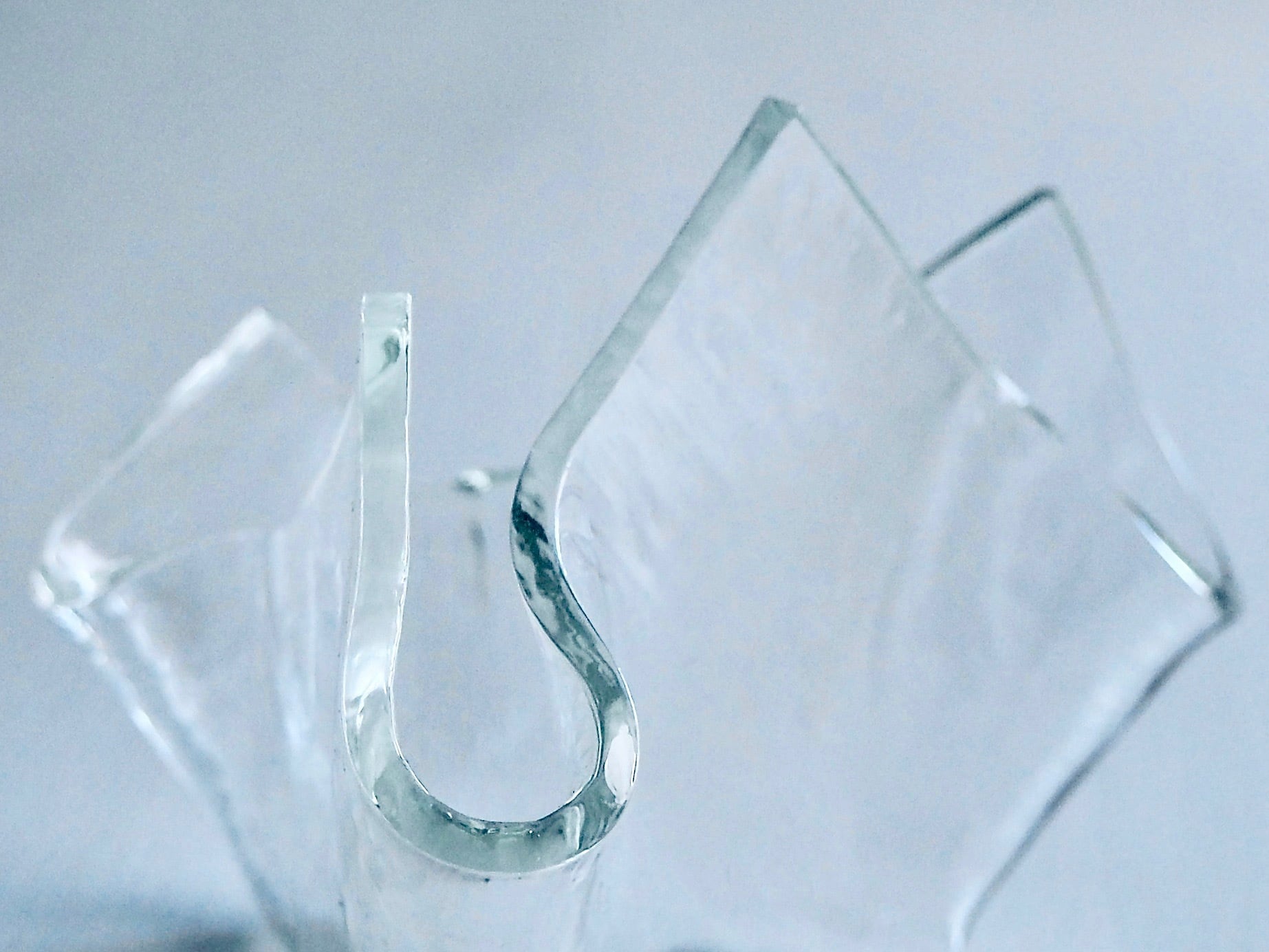 布のように柔らかなカーブを描く硝子のラインが特徴的な器型のオブジェ Hira Hira。