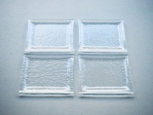 100×100mmのコンパクトなサイズですので、食卓やサイドテーブル、ディスプレイなど、さまざまなシーンでお使いいただけます。のせているものを引き立ててくれる透明なガラス、光と陰をお楽しみ下さい。